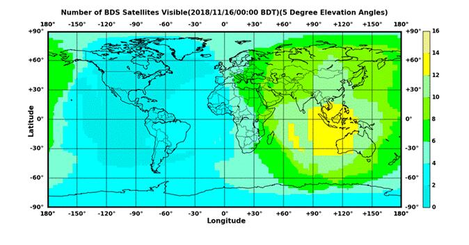 2018年11月16日北斗衛(wèi)星全球可見(jiàn)情況,目前亞太地區(qū)已經(jīng)逐步點(diǎn)亮,全球建網(wǎng)仍在進(jìn)展中(圖自:beidou.gov.cn)