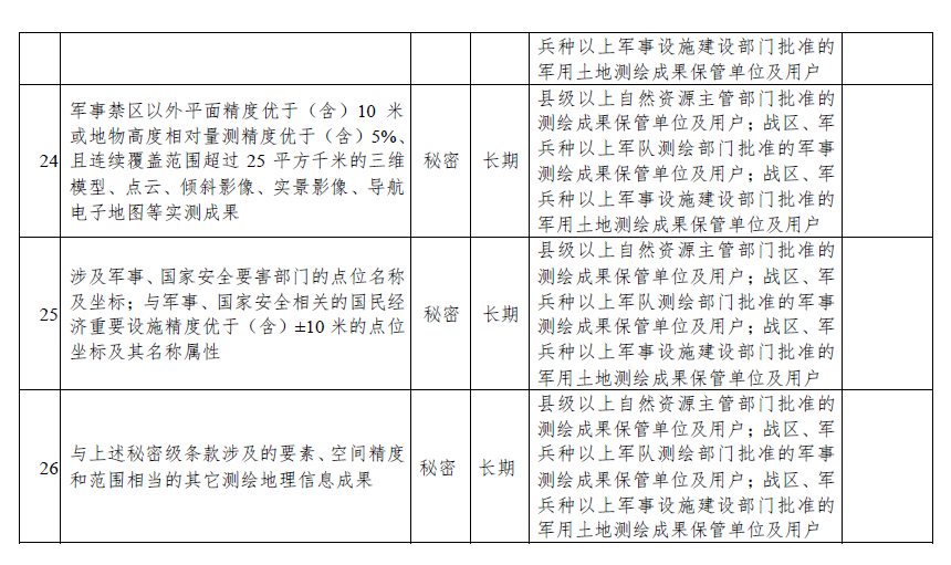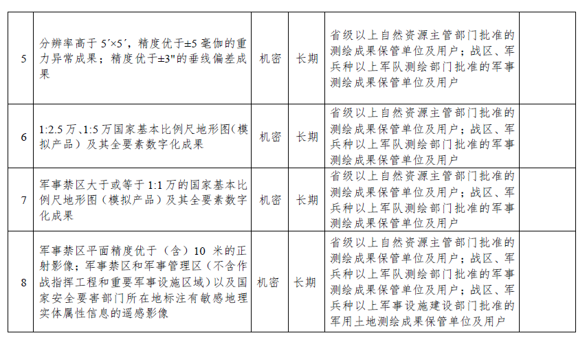 第五條 本規(guī)定自2020年7月1日起施行。2003年12月23日國家測繪局、國家保密局聯(lián)合印發(fā)的《關(guān)于印發(fā)<測繪管理工作國家秘密范圍的規(guī)定>的通知》(國測辦字〔2003〕17號)同時廢止。