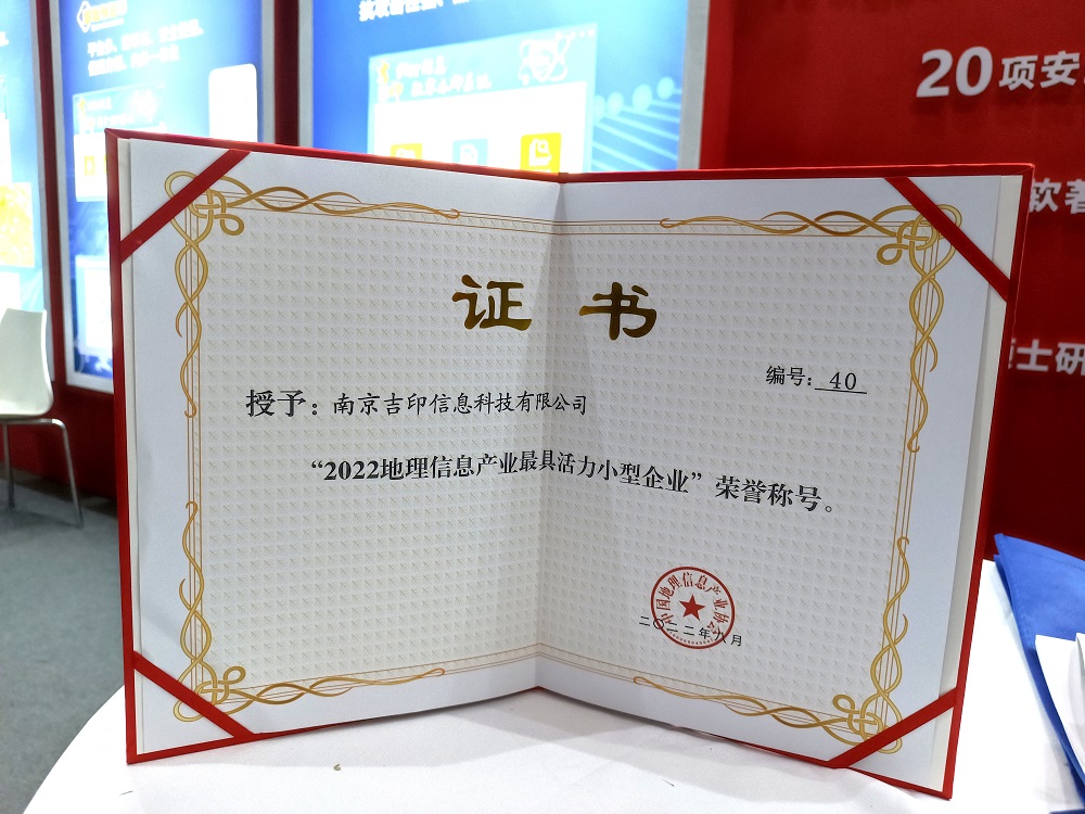 “吉印”作為領(lǐng)先的地理信息安全技術(shù)及服務(wù)提供商,憑借出色的專(zhuān)業(yè)能力、創(chuàng)新能力,榮獲2022地理信息產(chǎn)業(yè)最具活力中小企業(yè)稱(chēng)號(hào)。