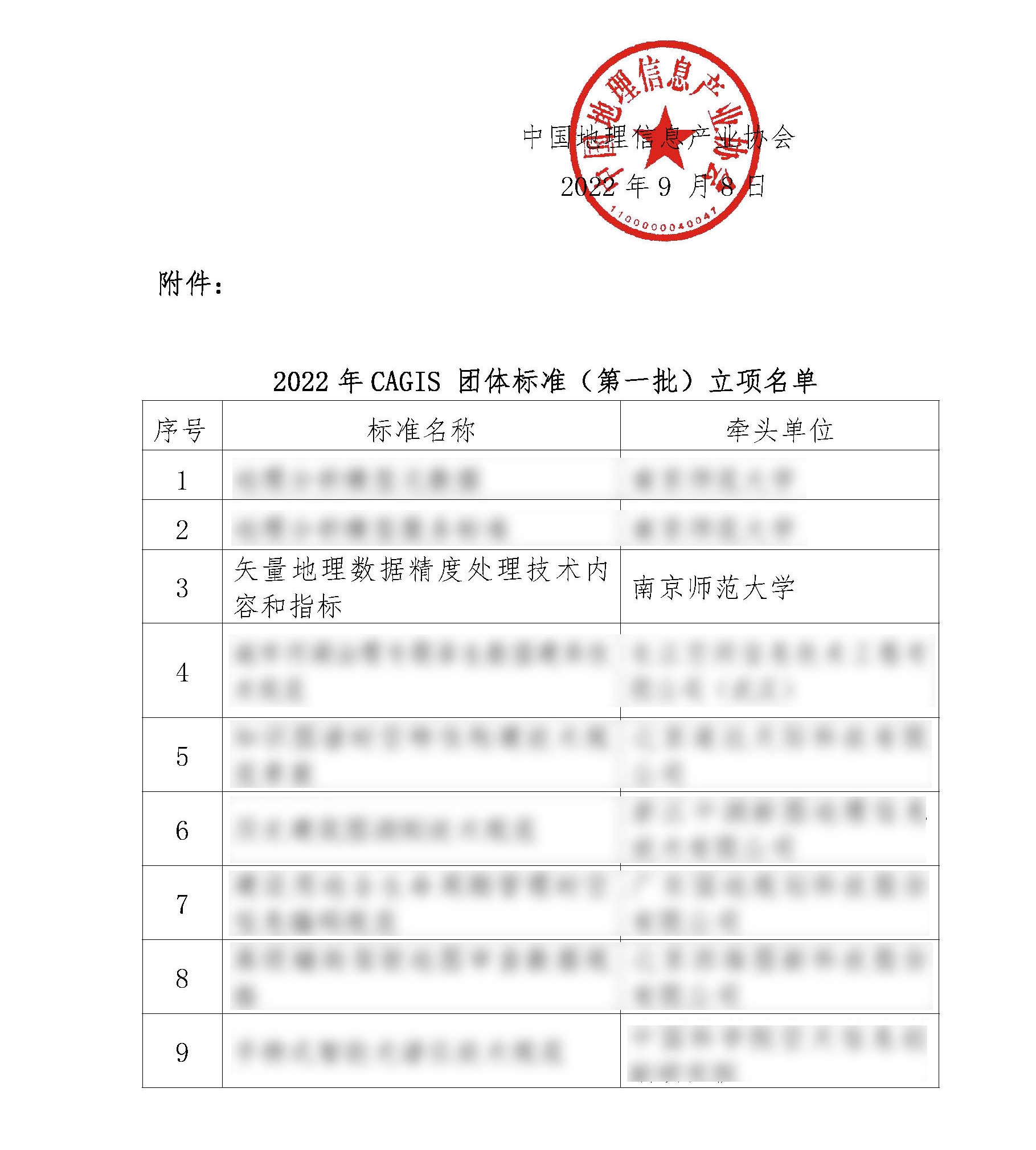 根據(jù)《中國地理信息產(chǎn)業(yè)協(xié)會團(tuán)體標(biāo)準(zhǔn)化工作管理規(guī)定》,經(jīng)中國地理信息產(chǎn)業(yè)協(xié)會團(tuán)體標(biāo)準(zhǔn)化管理委員會審查,擬批準(zhǔn)立項(xiàng)9項(xiàng)CAGIS團(tuán)體標(biāo)準(zhǔn),由我公司董事長朱長青教授、總經(jīng)理任娜教授主持的《矢量地理數(shù)據(jù)精度處理技術(shù)內(nèi)容和指標(biāo)》團(tuán)體標(biāo)準(zhǔn)獲批立項(xiàng)。