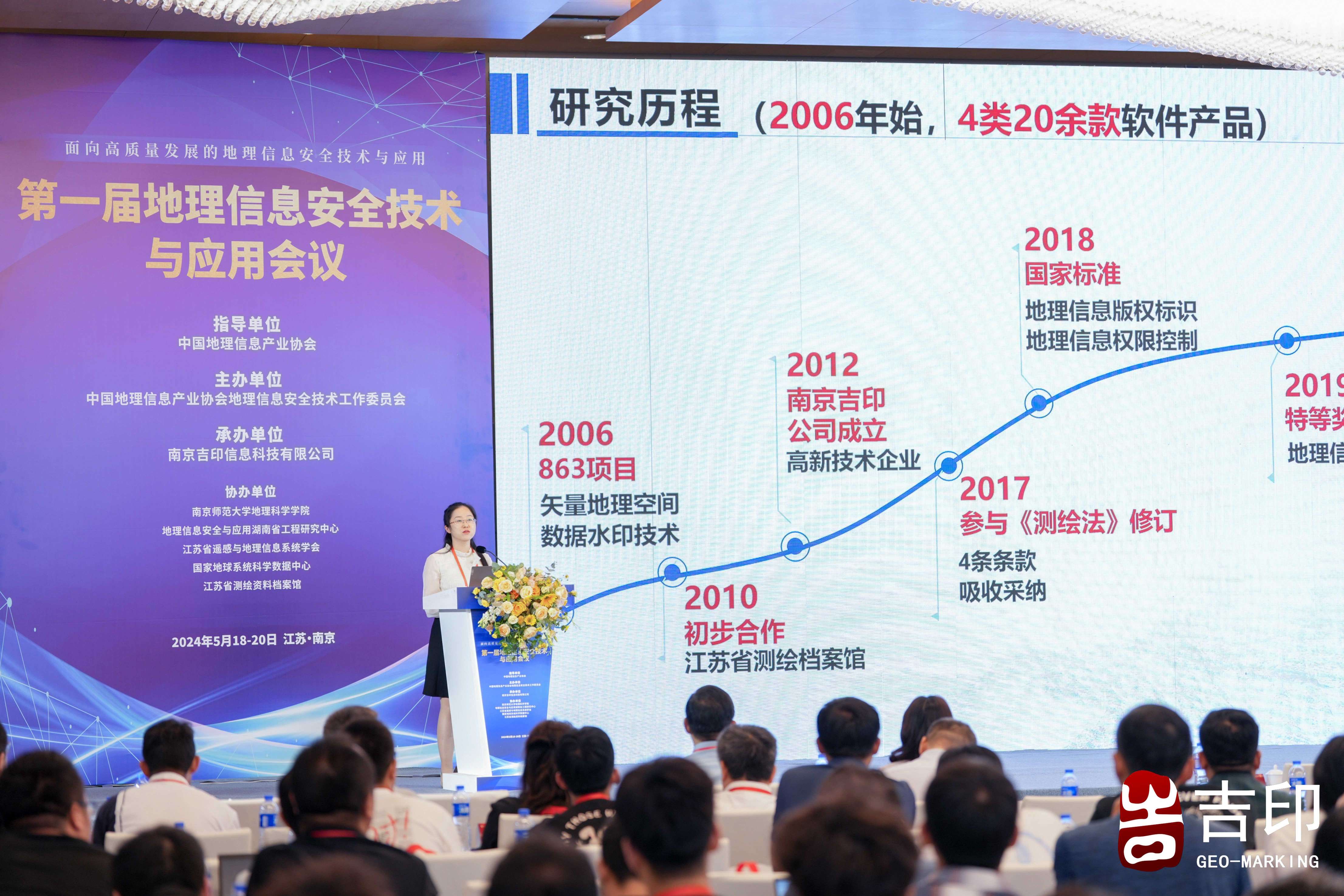 第一屆地理信息安全技術(shù)與應(yīng)用組委會主席、中國地理信息產(chǎn)業(yè)協(xié)會地理信息安全技術(shù)工作委員會秘書長、南京師范大學(xué)教授、南京吉印信息科技公司任娜作報告