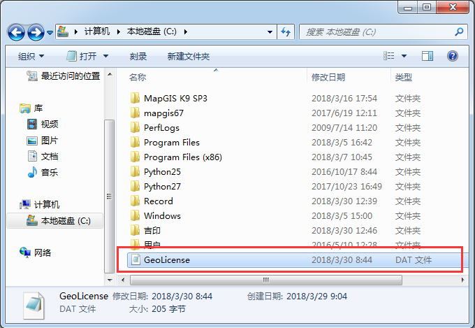(4)將授權(quán)文件“GeoLicense.dat”放置C盤的根目錄下即可使用本軟件: