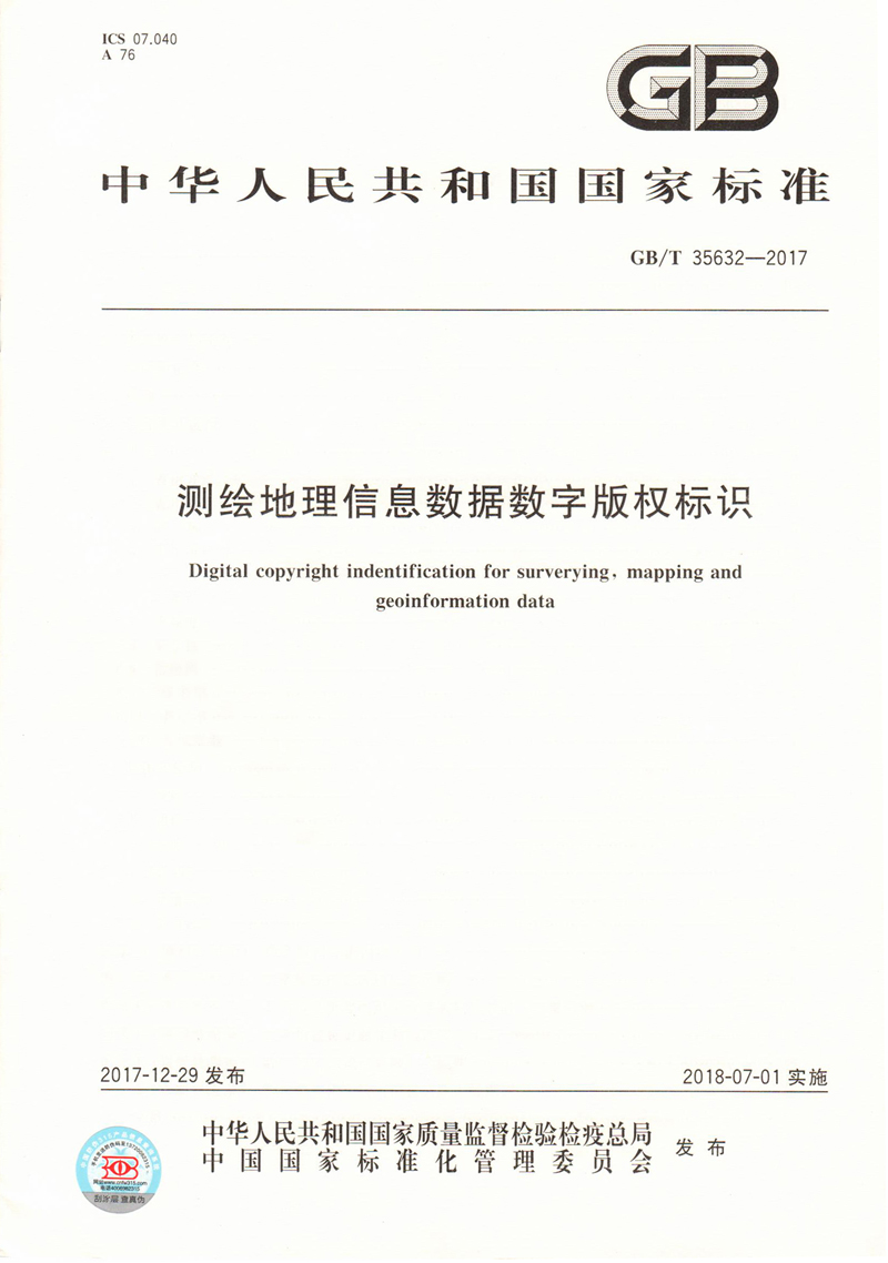 國(guó)家標(biāo)準(zhǔn)化管理委員會(huì)正式頒布我司參與制定國(guó)家標(biāo)準(zhǔn):《測(cè)繪地理信息數(shù)據(jù)數(shù)字版權(quán)標(biāo)識(shí)》