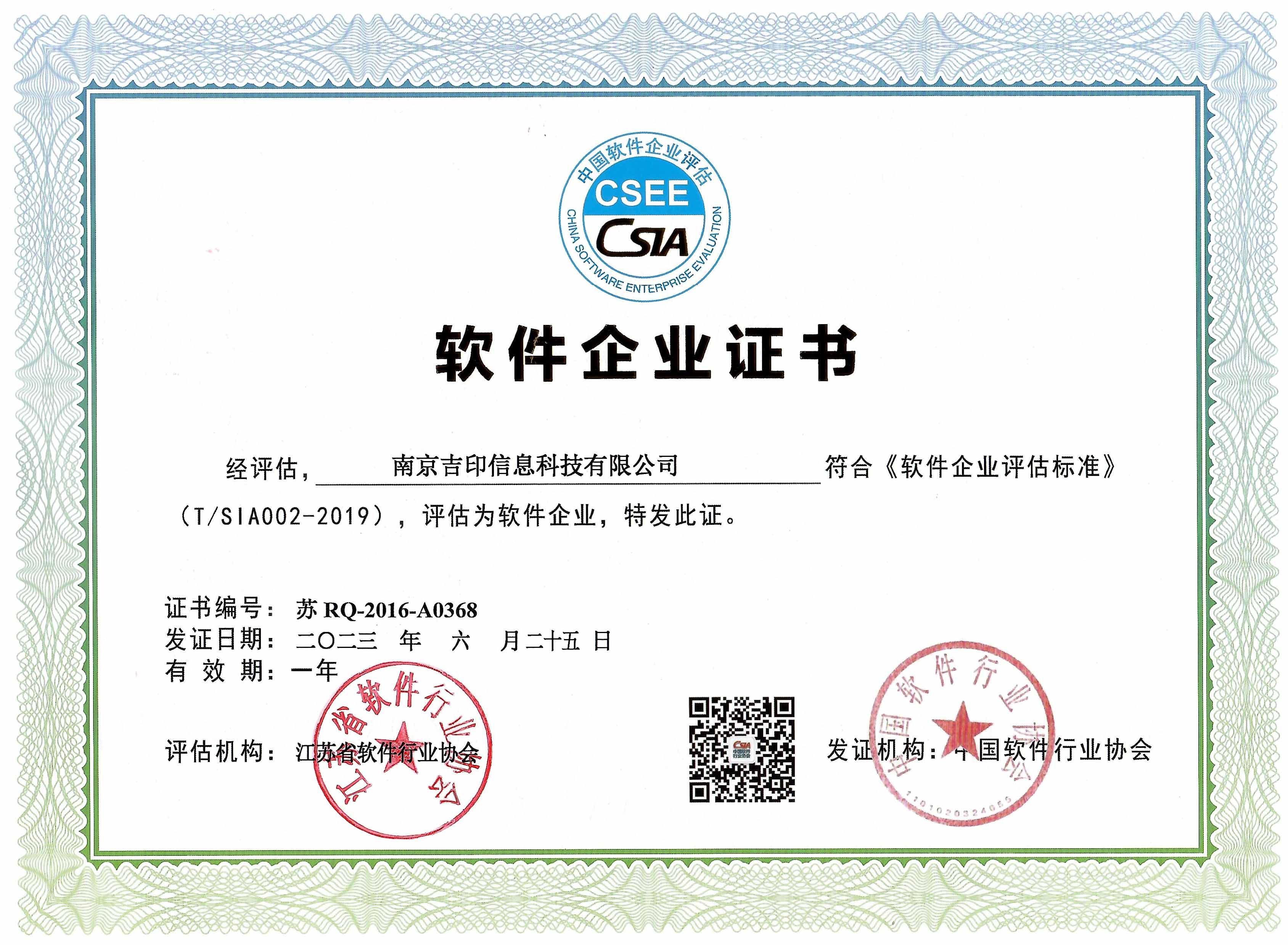 軟件企業(yè)證書